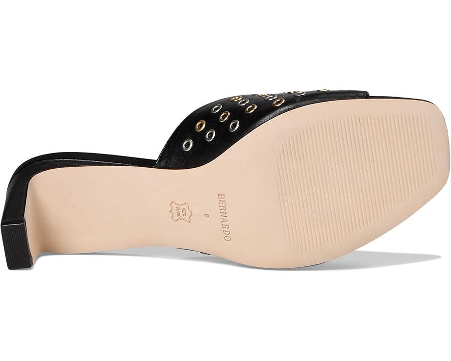 • Будьте смелее. Эти мюли Bernardo Cenza Grommet с открытым носком, строгими линиями в сочетании с дерзкими люверсами по всей поверхности создают мощный акцент. Носите их на свидании или прогулке с подругами. Эти босоножки, выполненные из кожи, имеют открытый квадратный носок, блочный каблук и фирменную символику на стельке.
