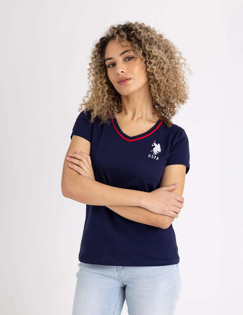 Футболка с V-образным вырезом Triple Crown — спортивная элегантность с тонкими деталями.