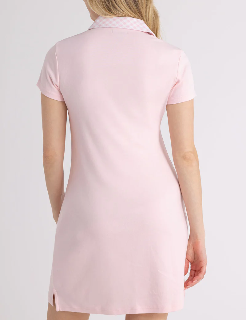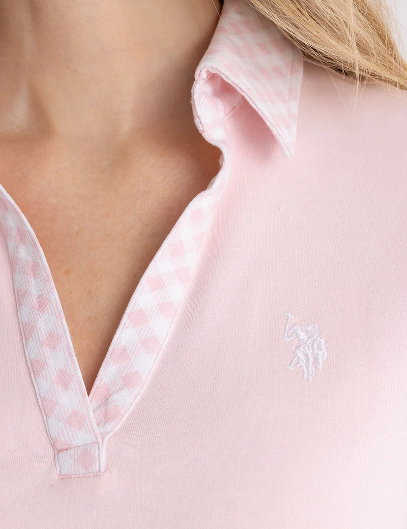 Платье-поло с разрезом на горловине и воротником в клетку гингем.