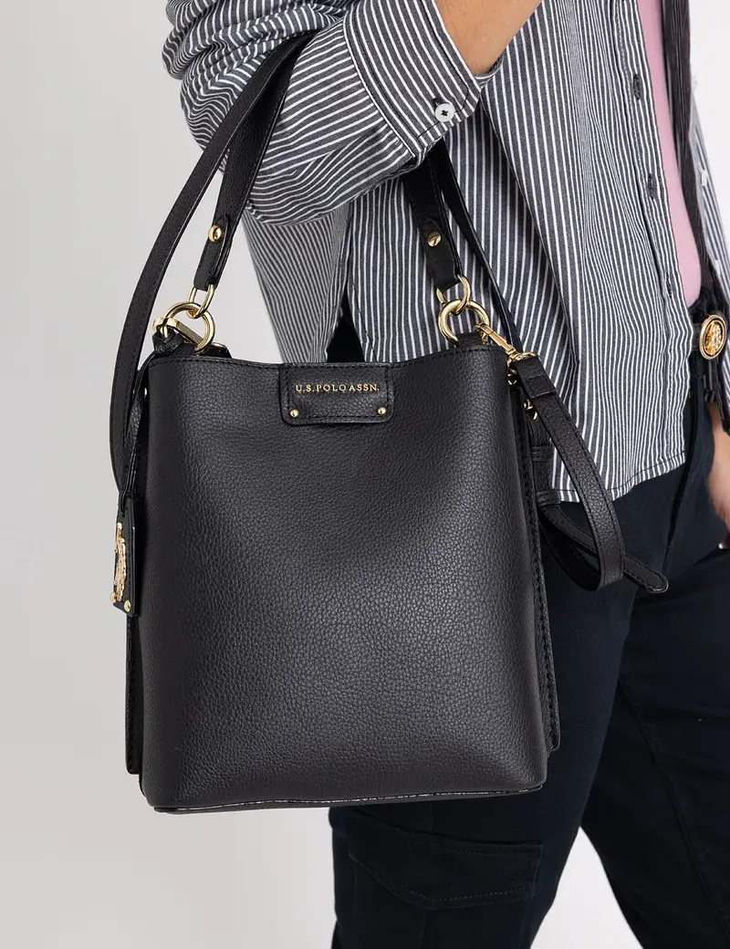 Выведите свой стиль аксессуаров на новый уровень с этой сумкой-ведром Solid Bucket Crossbody от US Polo Assn. Изготовленная из высококачественного сафьянового полиуретана, она сочетает в себе элегантный, структурированный силуэт и практичность. Затягивающийся шнурок сверху обеспечивает надежную застежку, а регулируемый ремешок обеспечивает удобное ношение без помощи рук. Сумка, дополненная тисненым логотипом в тон, идеально сочетает в себе моду и универсальность.