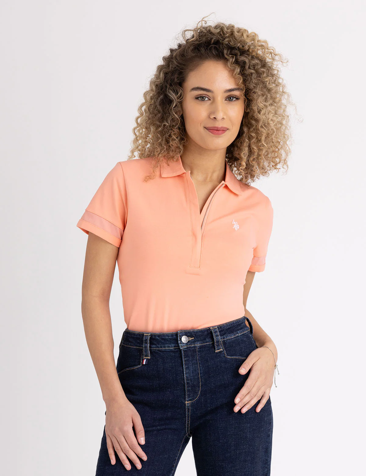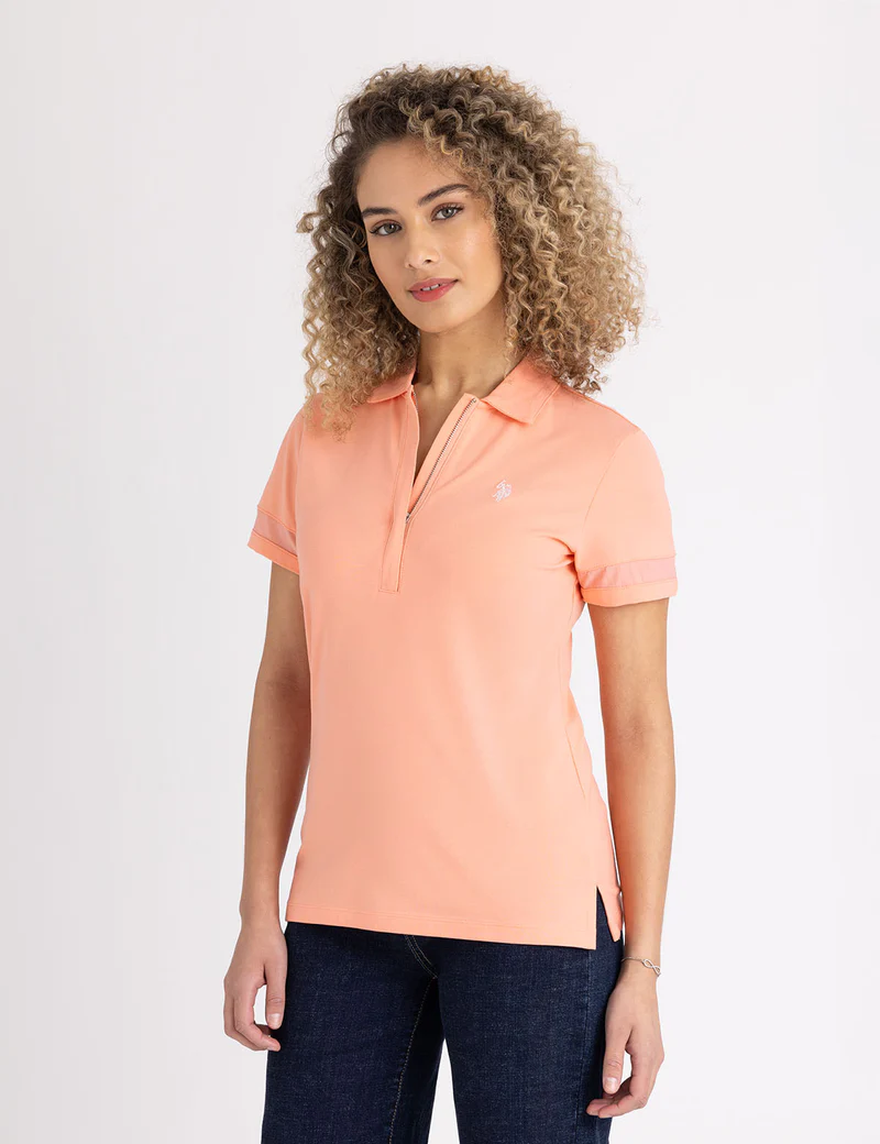 Рубашка-поло на молнии с сетчатыми вставками.