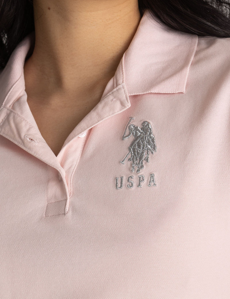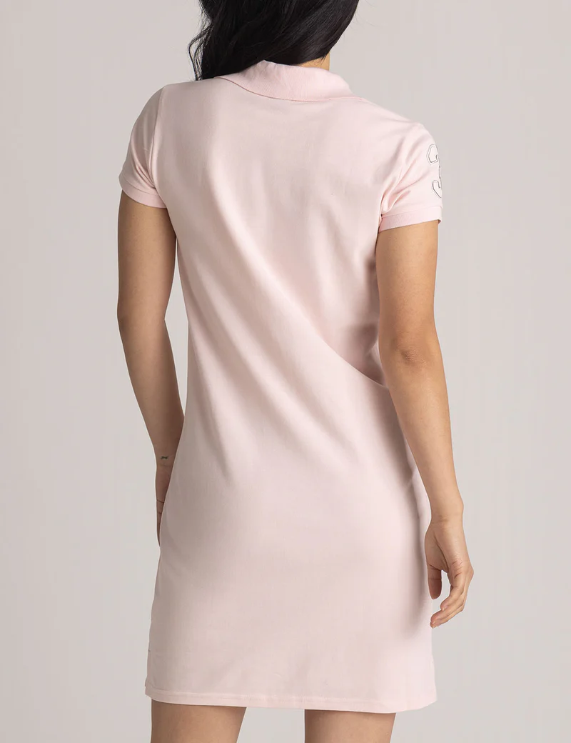 Платье-поло USPA Metallic – это свежий взгляд на вневременную классику, сочетающий спортивный стиль с лёгким мерцанием. Короткие рукава, классический воротник-поло и планка на пуговицах дополнены ярким металлическим логотипом на груди и контрастной нашивкой с номером на рукаве, что придаёт модели спортивный вид, а также разрезами по бокам для свободы движений. Платье обеспечивает комфорт в течение всего дня и выгодно подчеркивает фигуру, позволяя легко переодеваться, сохраняя при этом элегантный и сдержанный образ. На модели размер S.