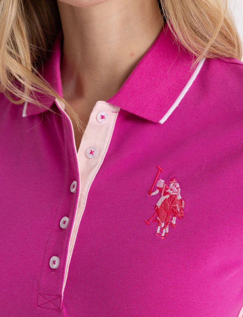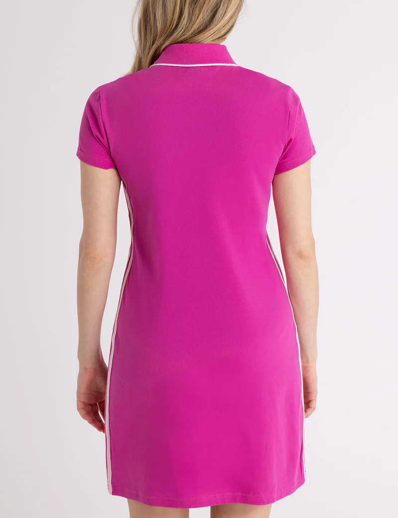 Платье-поло из трикотажа с полосками по бокам.