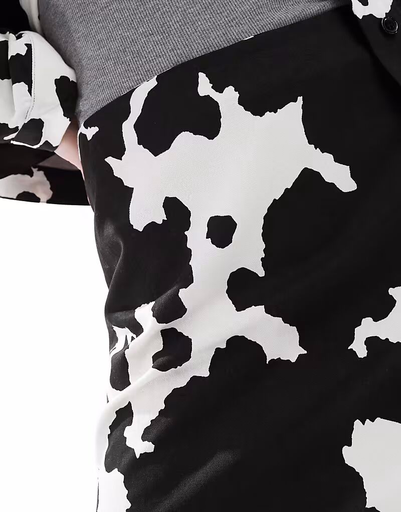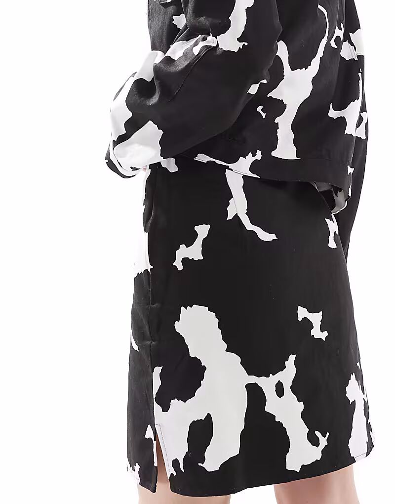 Мини-юбка из эластичного денима Object с принтом коровы черного цвета