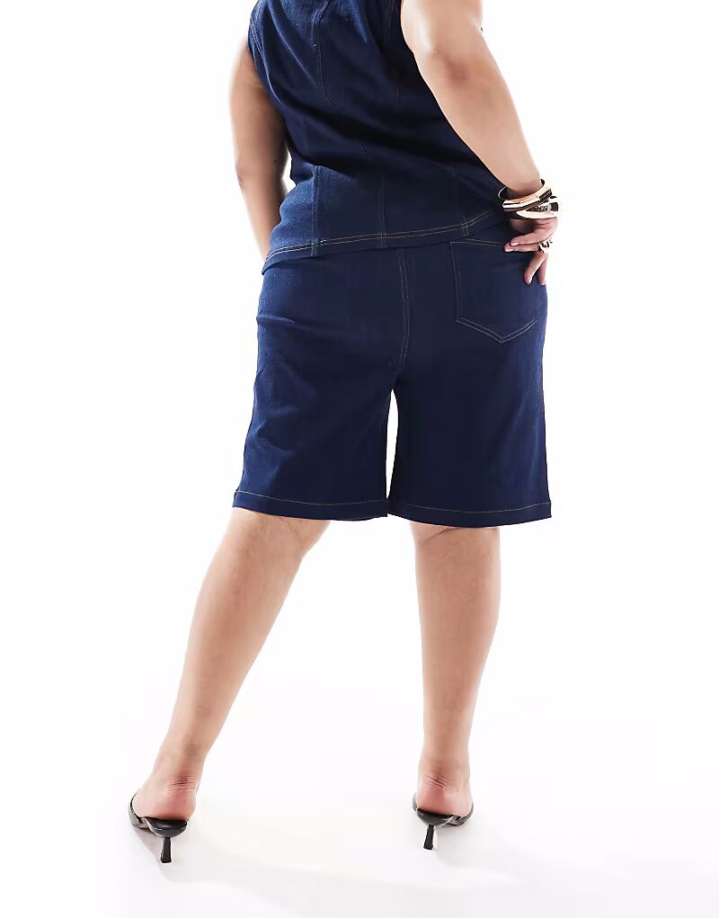 Эксклюзивные удлиненные джинсовые шорты Renee Studio Plus из темного денима