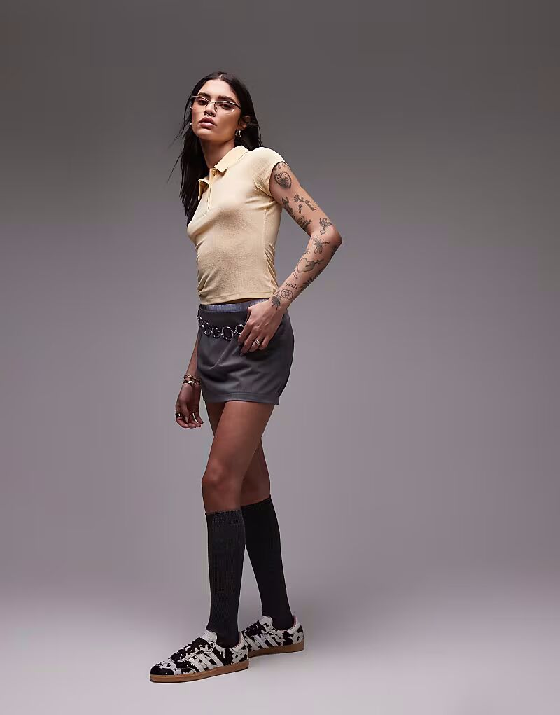 Микро-мини-юбка ASOS DESIGN серого меланжевого цвета