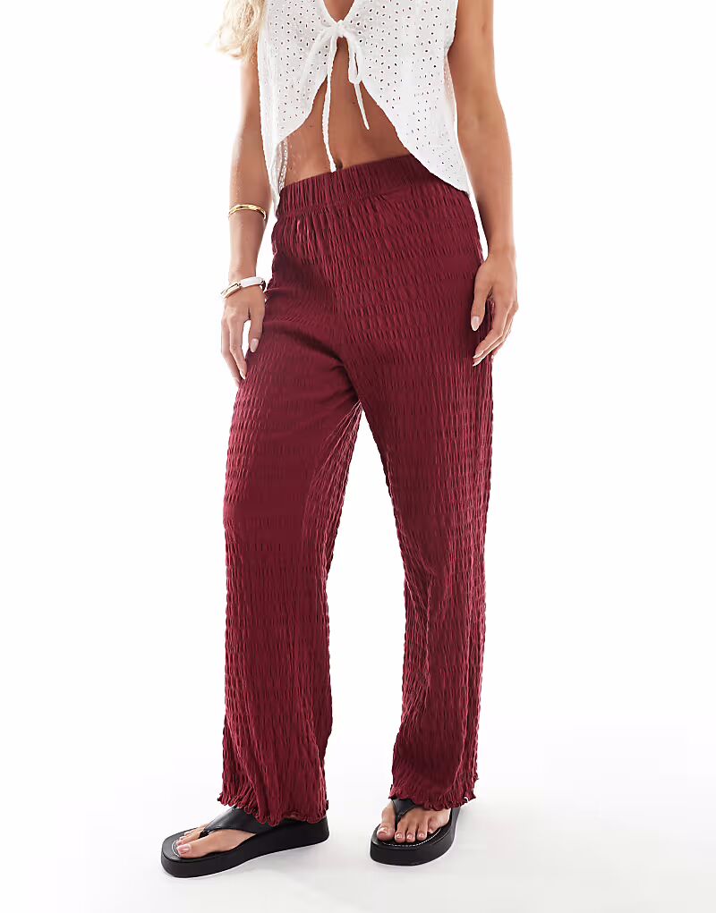 Свободные брюки ONLY Petite со сборками в бордовом цвете