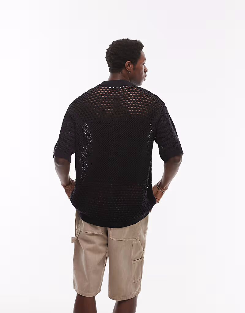 Поло Topman с открытым плетением черного цвета