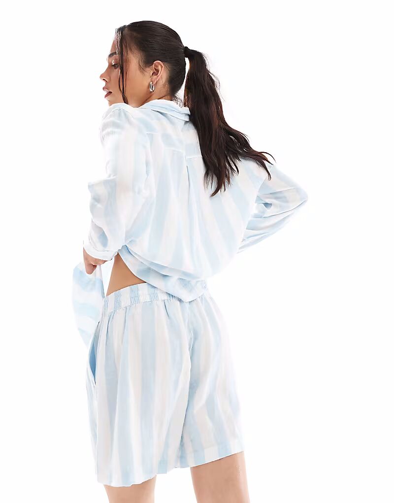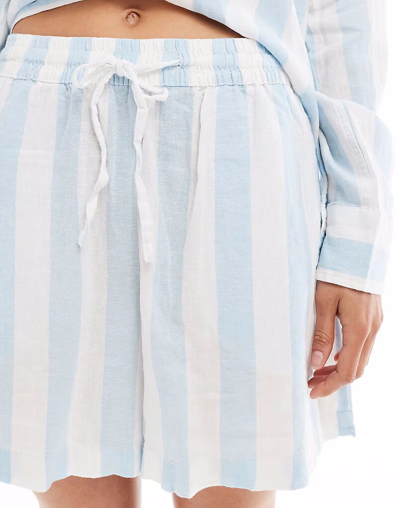 Льняные шорты Vero Moda в бледно-голубую полоску