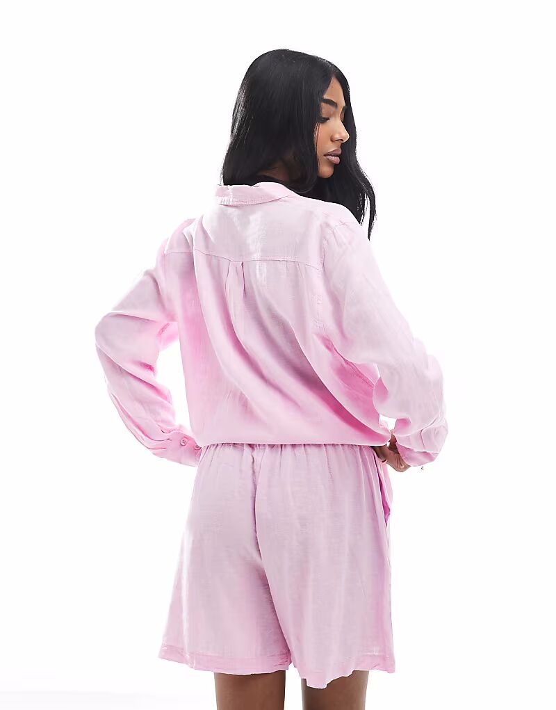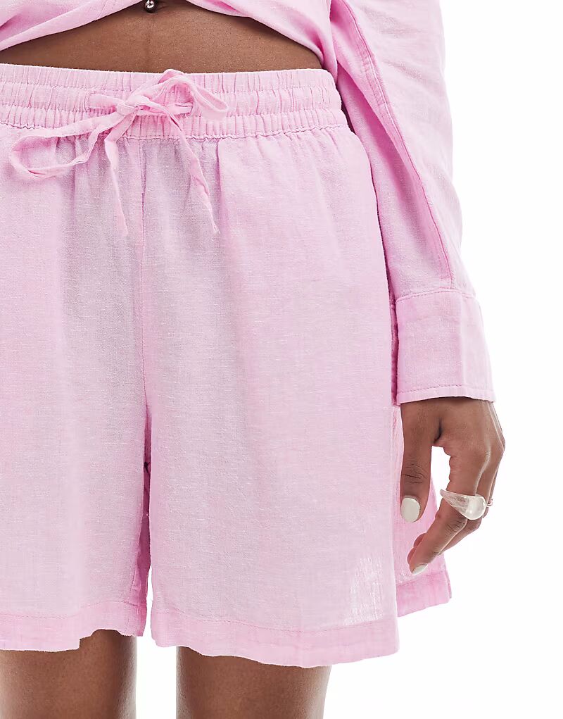 Льняные шорты Vero Moda розового цвета