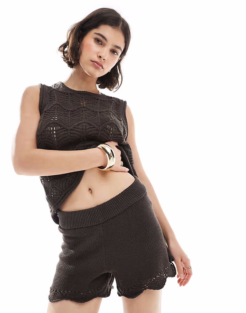 Вязаные шорты Vero Moda в шоколадно-коричневом цвете - КОРИЧНЕВЫЙ