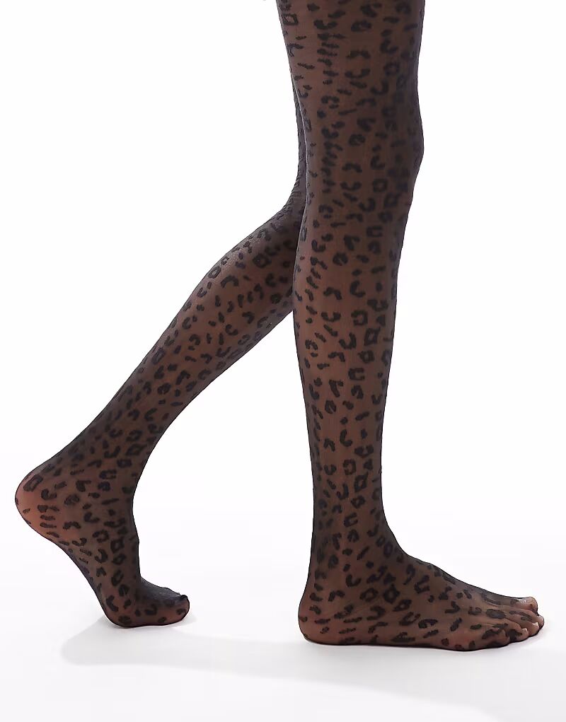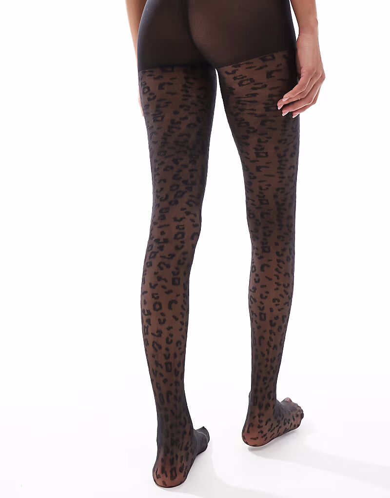 Черные колготки с леопардовым принтом ASOS DESIGN