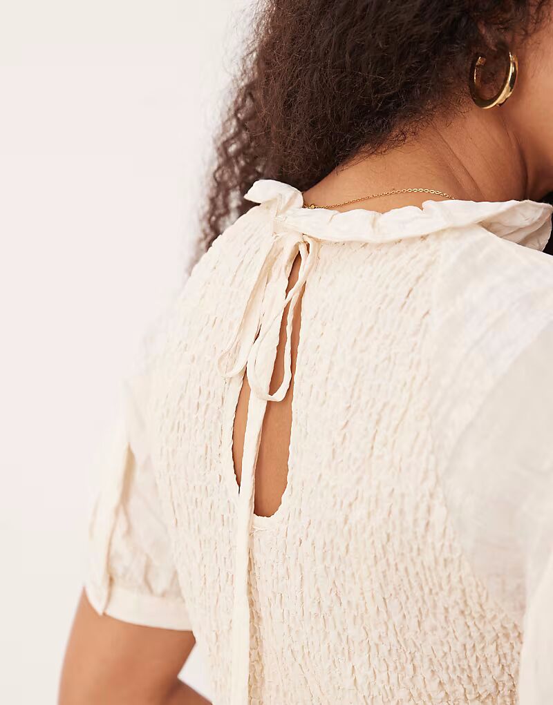 Топ AWARE с присборенными рукавами-буфами кремового цвета