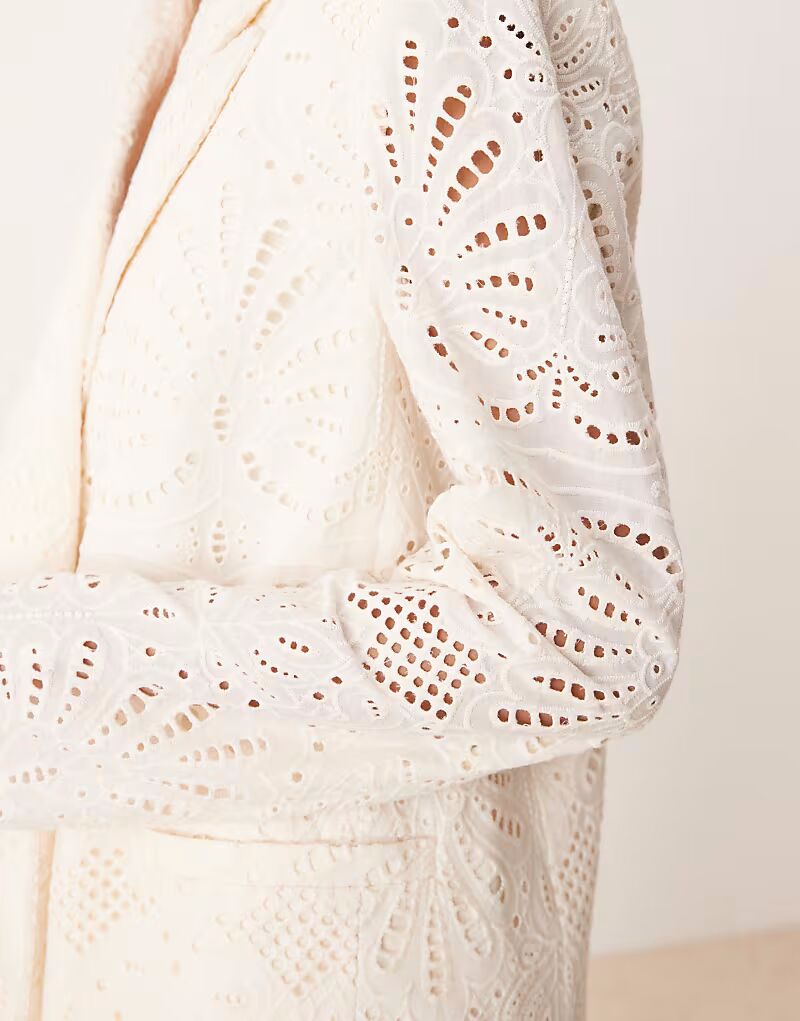 Вышитый пиджак ASOS DESIGN кремового цвета