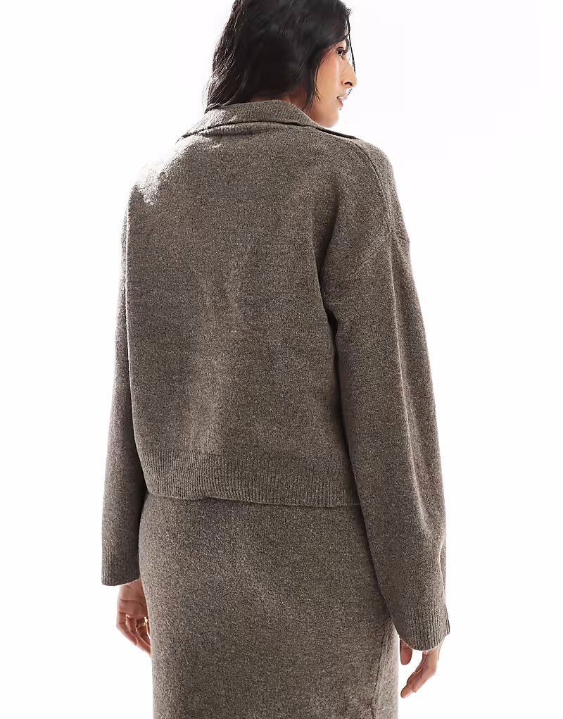 Джемпер с открытым воротом от Pieces в темно-сером цвете