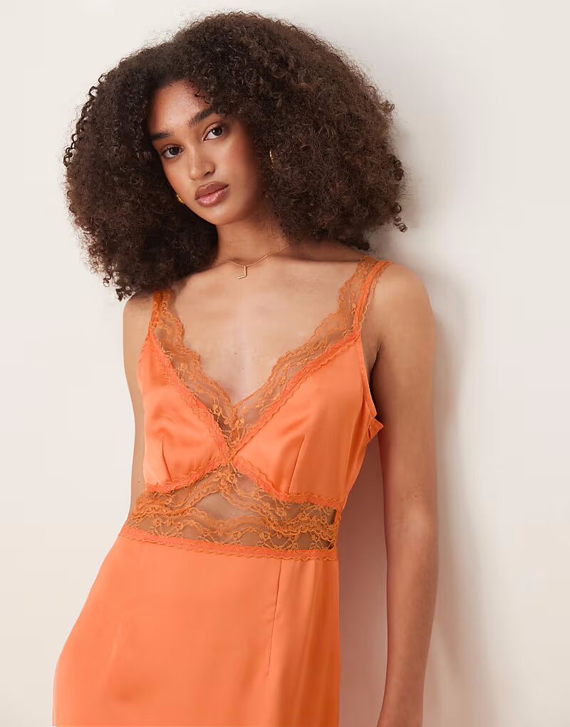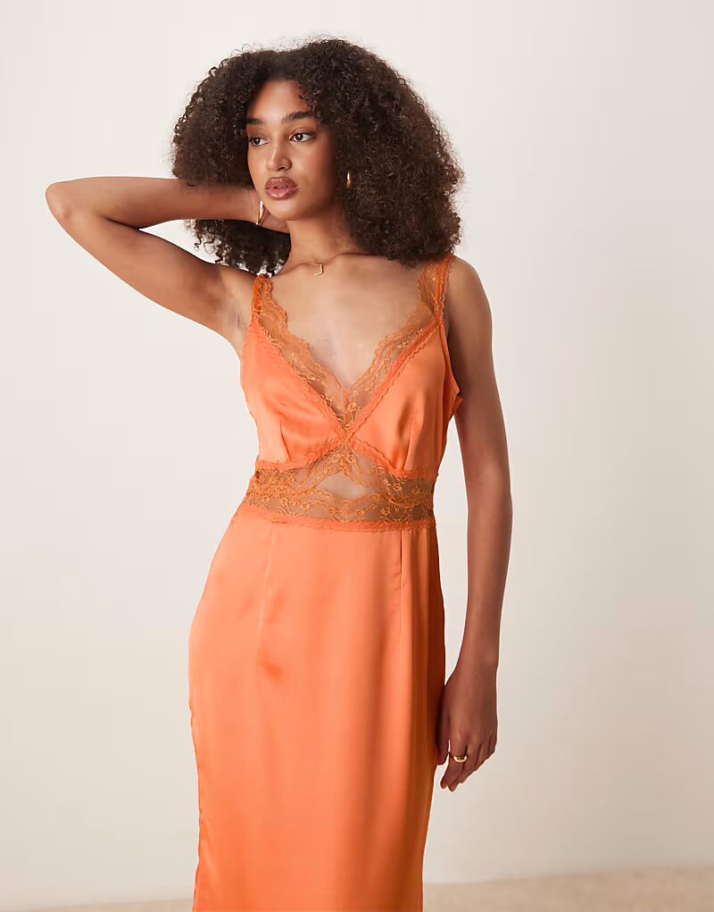 Платье-комбинация мидакси Never Fully Dressed Mimi оранжевого цвета