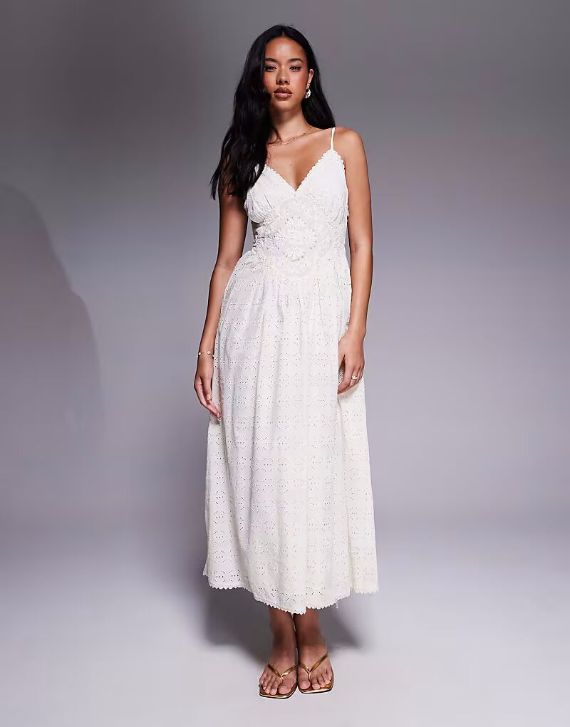 Платье миди River Island с вышивкой кремового цвета 6 562₽
