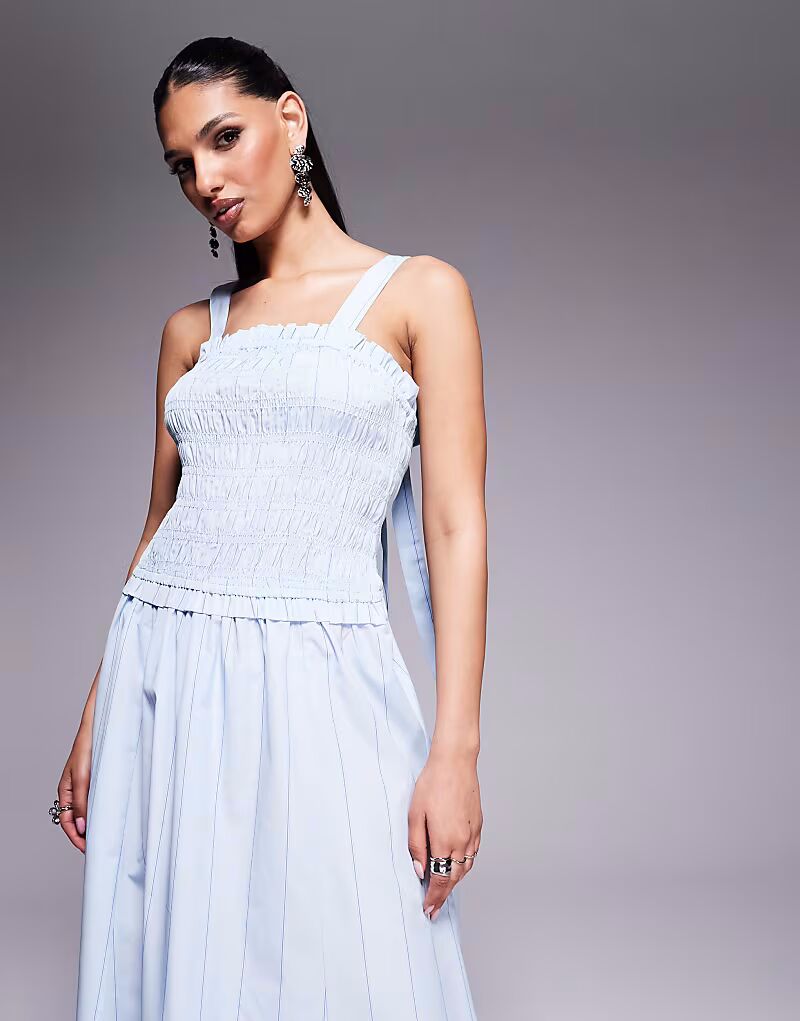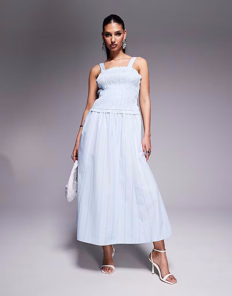 Платье миди River Island со сборками синего цвета