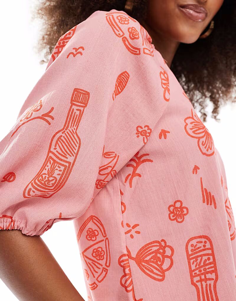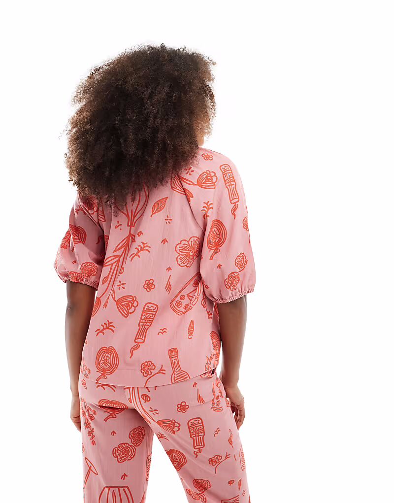 Блузка на пуговицах Object Coord с розово-розовым принтом