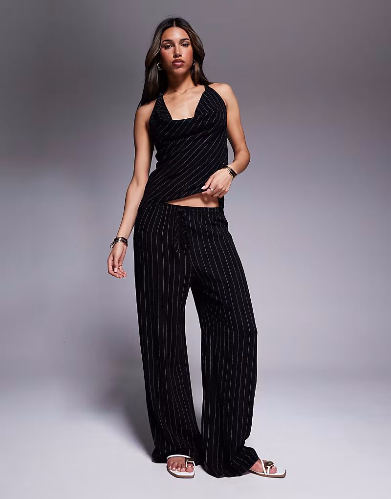 Полосатый топ-халтер River Island черного цвета 4 241₽