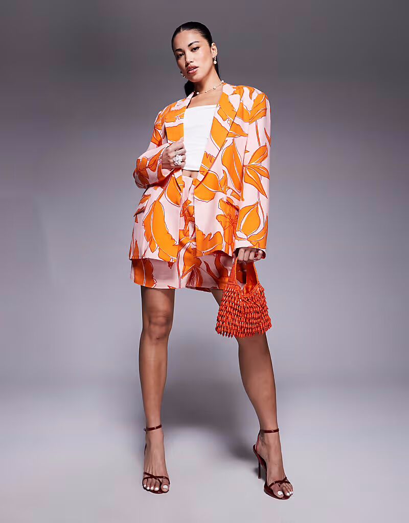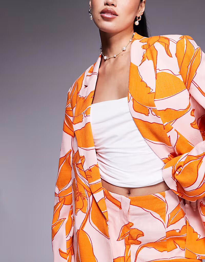 Свободный блейзер ASOS DESIGN из льна с пальмовым принтом