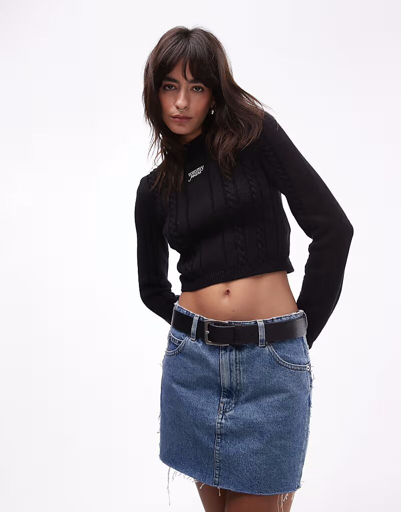 Джемпер Tommy Jeans с косичной вязкой черного цвета
