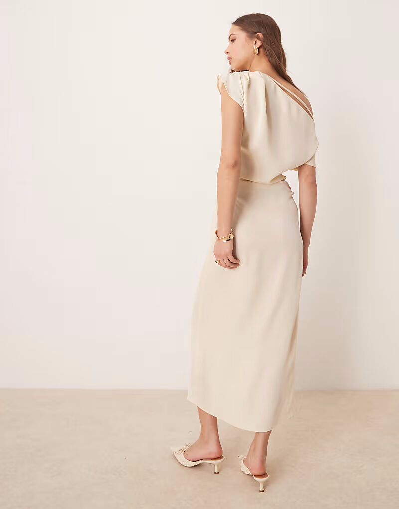 Платье миди ASOS DESIGN с драпировкой и бретельками цвета пахты
