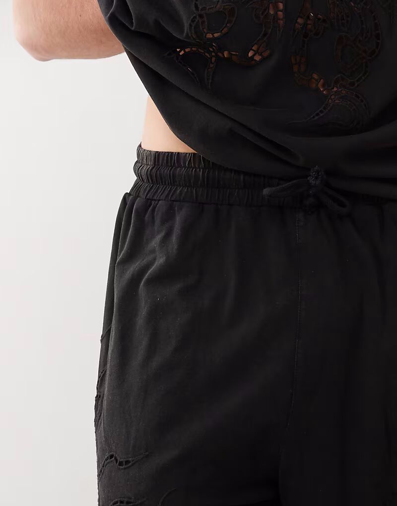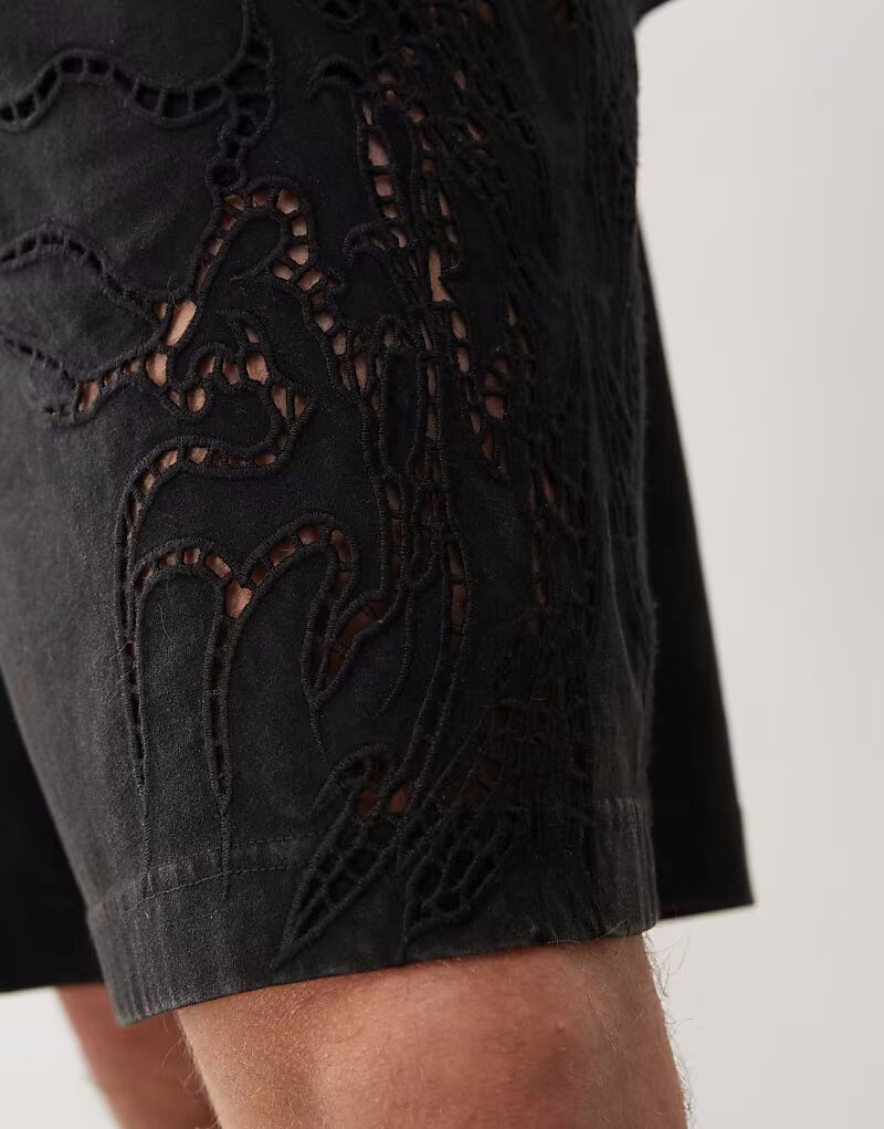Короткие шорты для будней с отделкой бродери англе в оттенке «черный с оттенком»