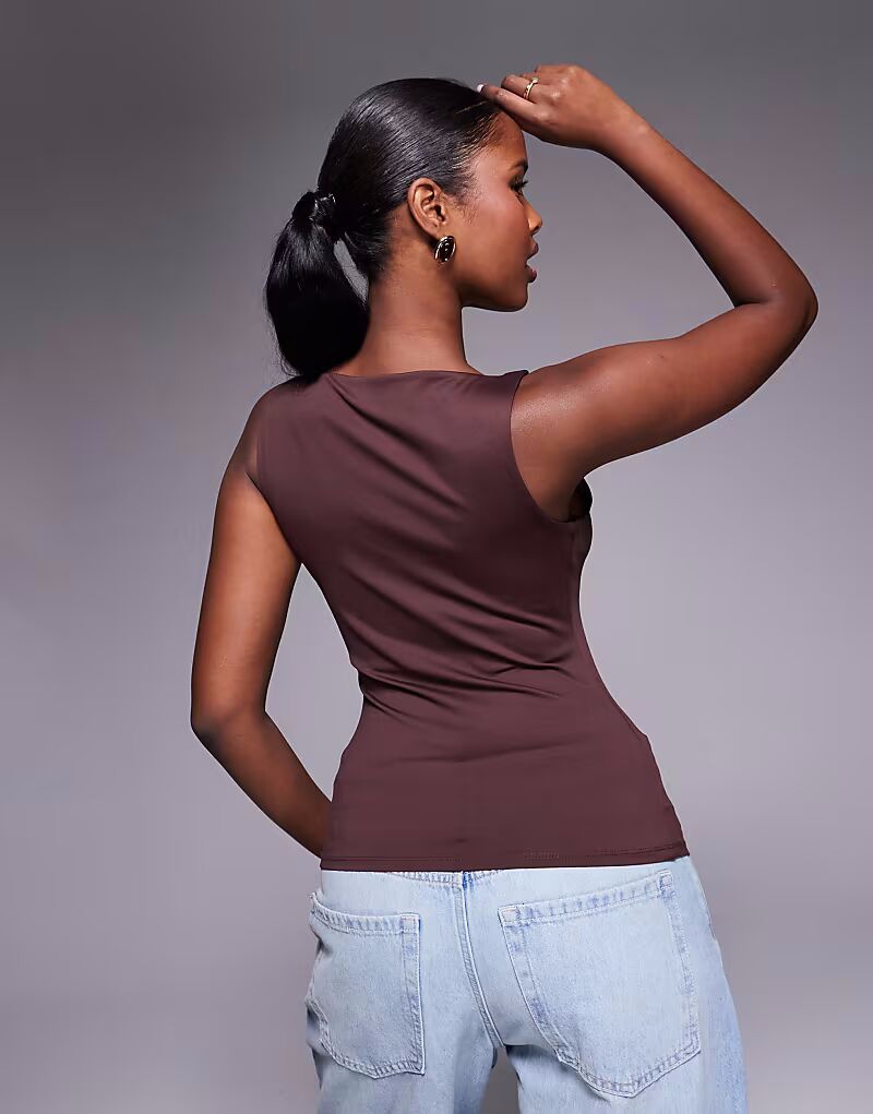 Коричневый топ River Island с асимметричным вырезом горловины 3 087₽