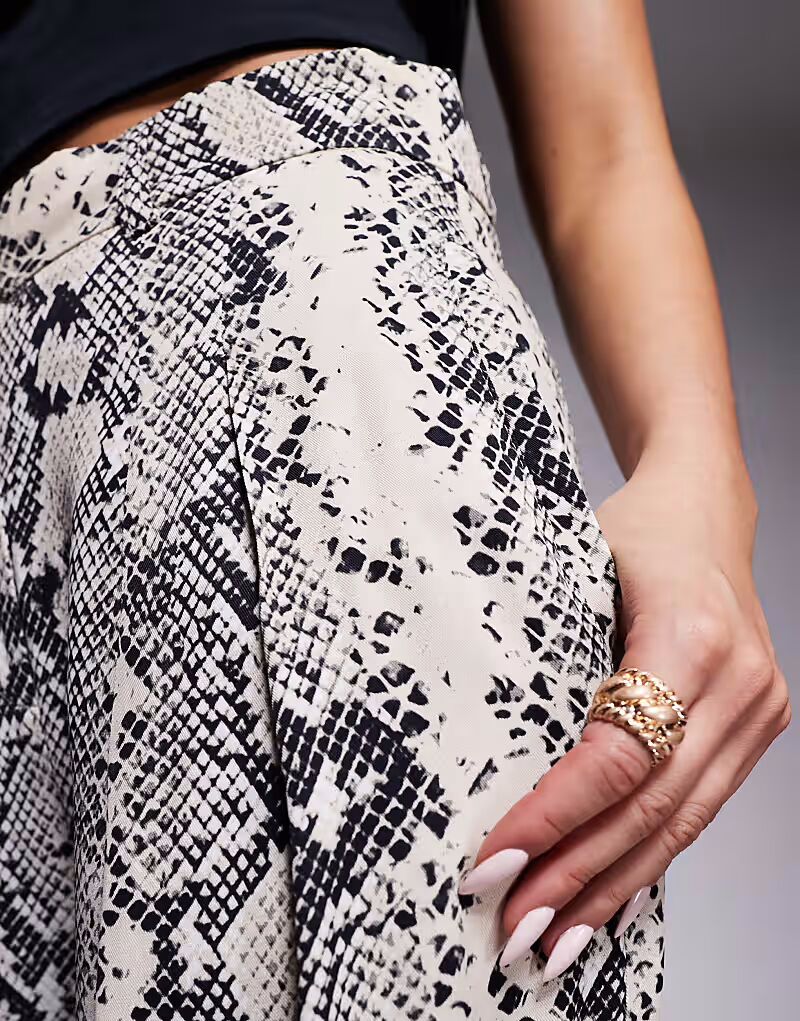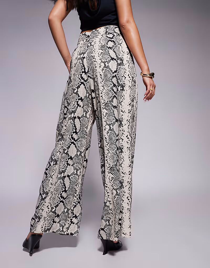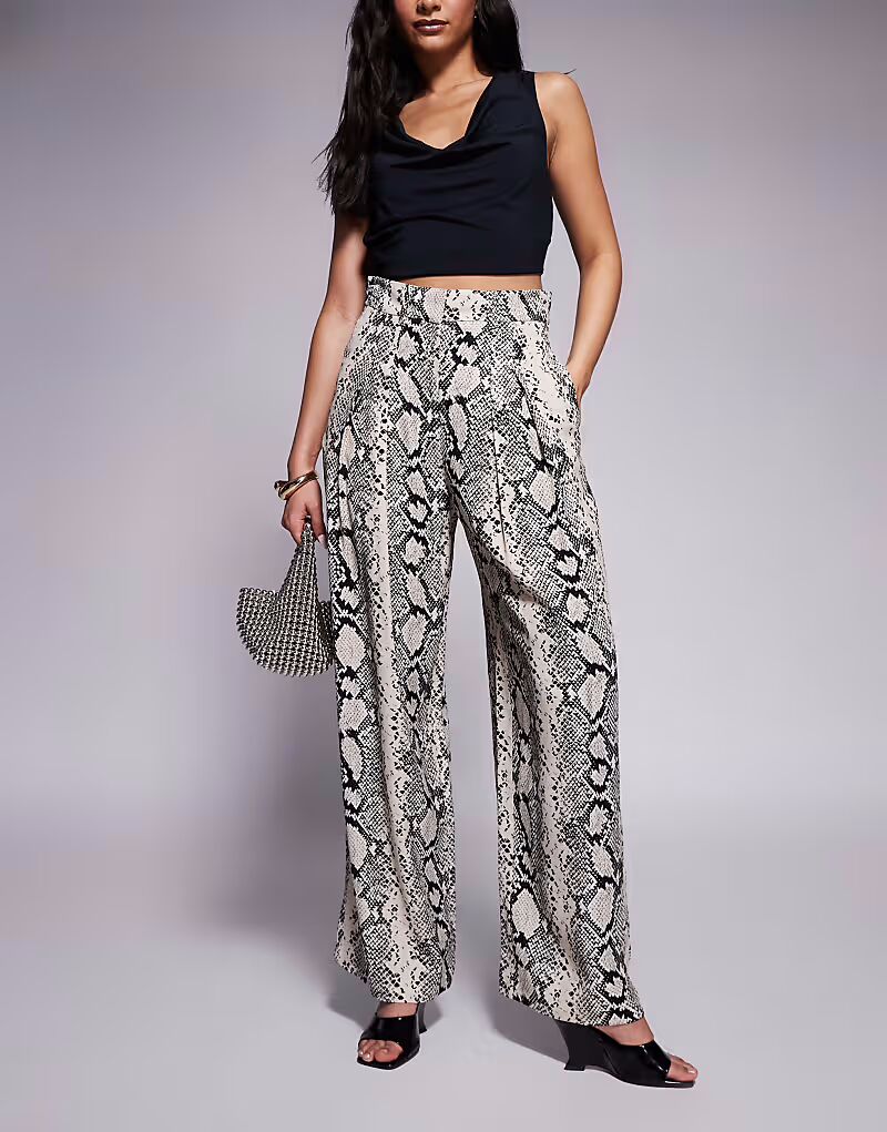 Брюки-клеш River Island со змеиным принтом кремового цвета