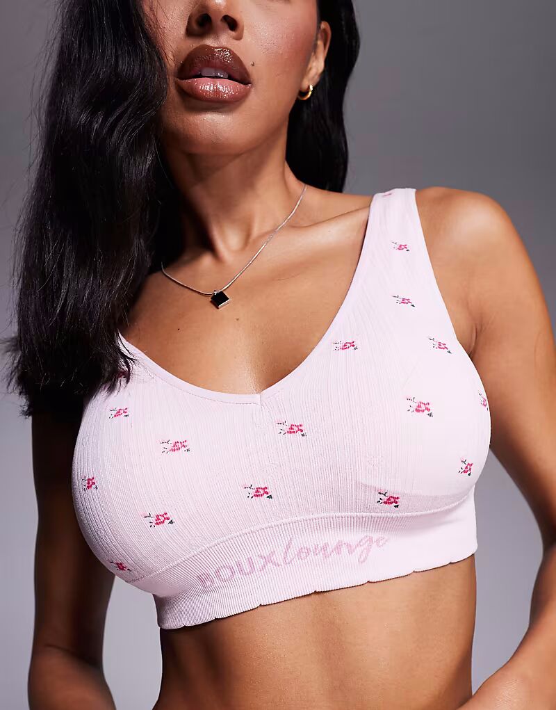 Бюстгальтер-бралетт с принтом роз Boux Avenue, розовый