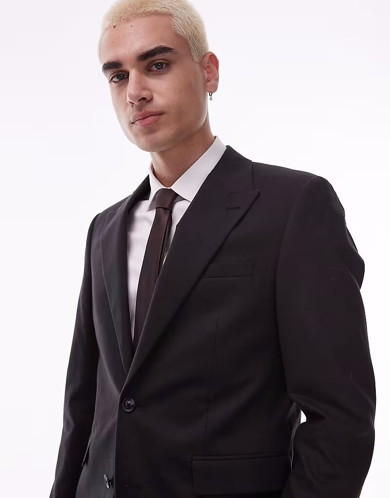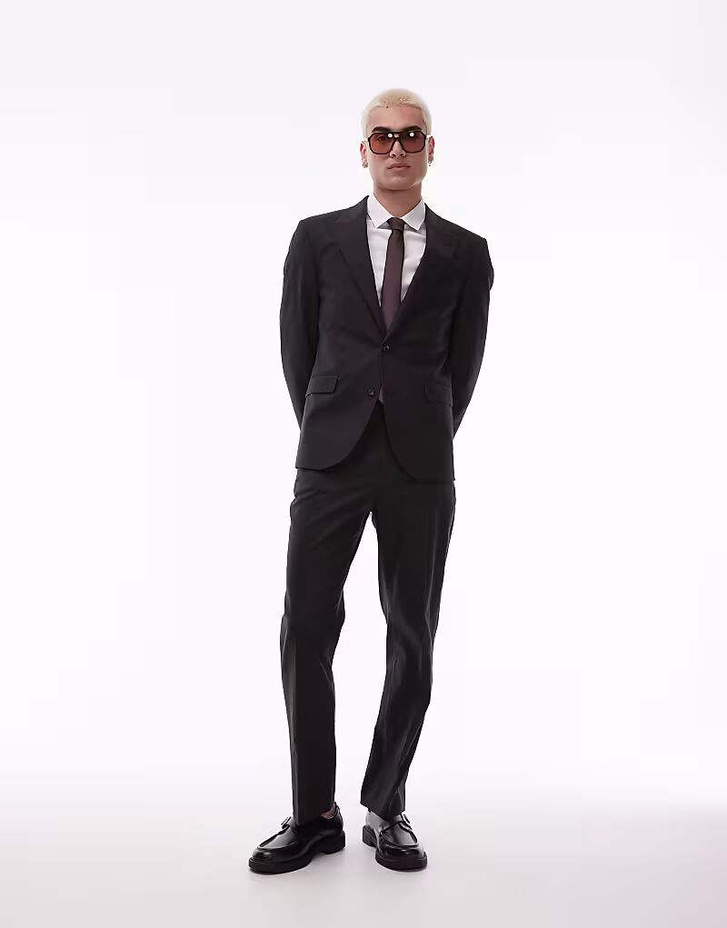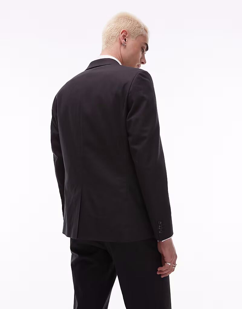 Однобортный блейзер Topman из льняной смеси черного цвета