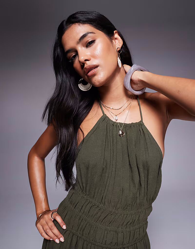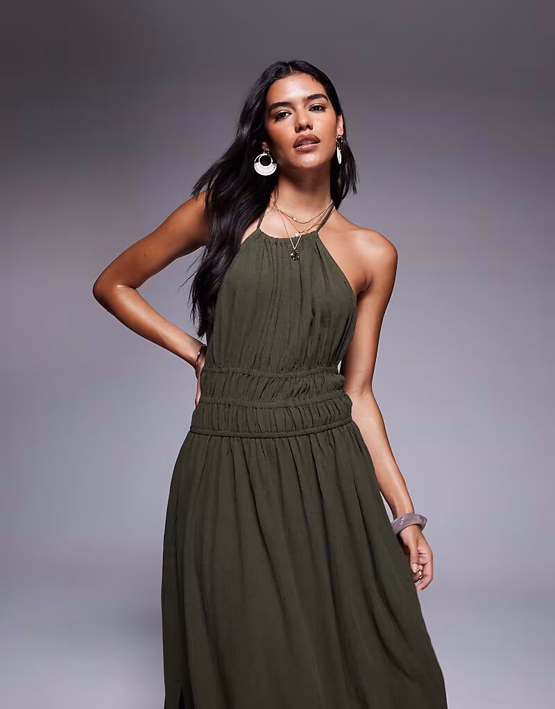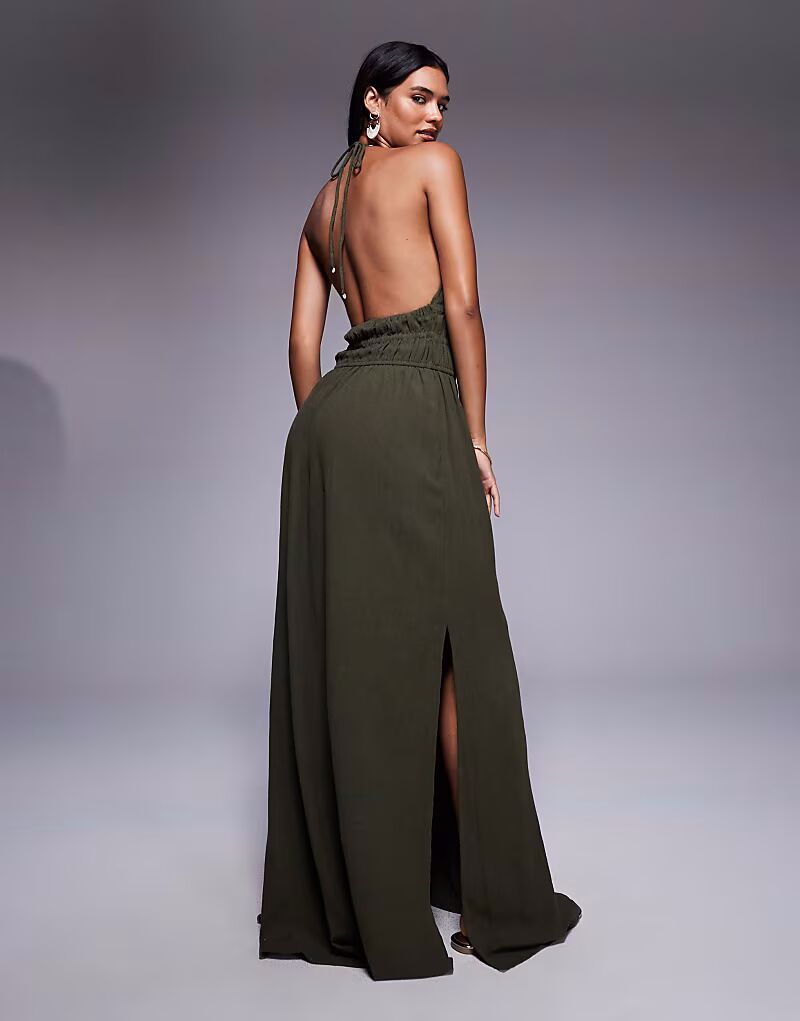 Длинное платье River Island с вырезом халтер цвета хаки
