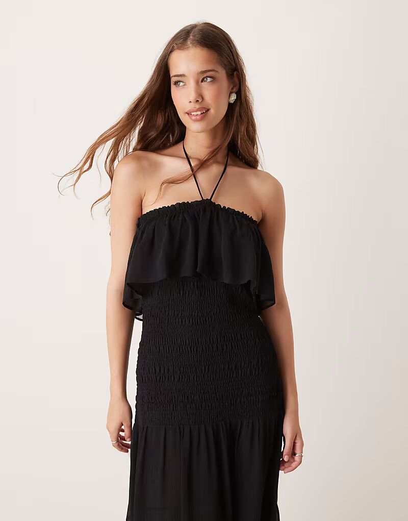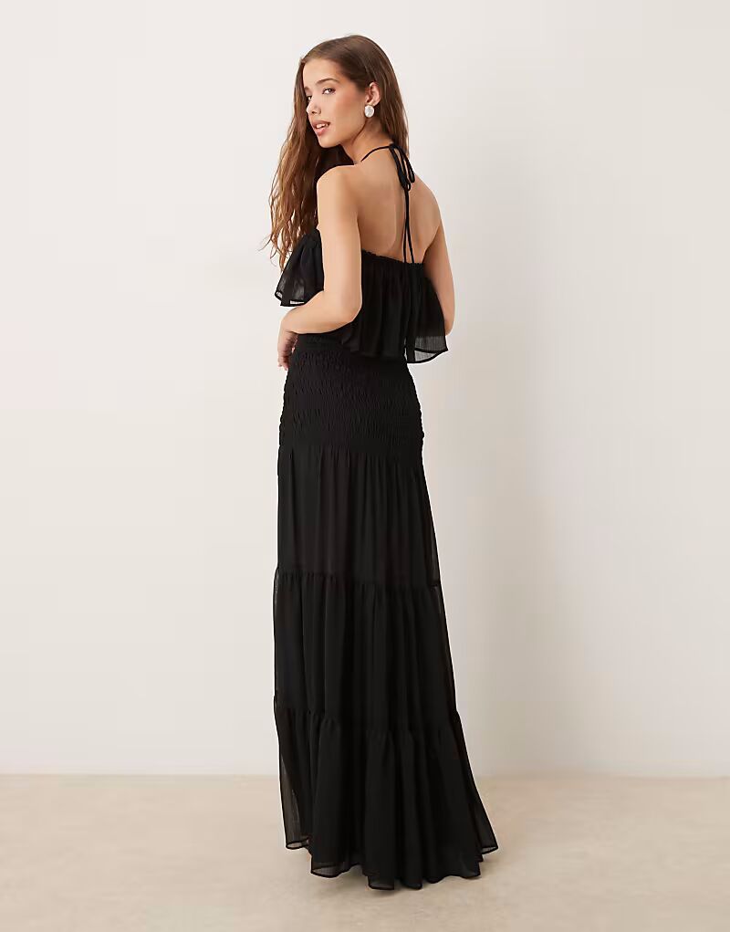 Платье макси из шифона Mango с бретелью через шею черного цвета