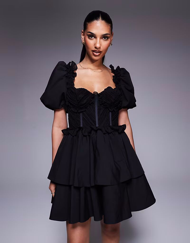 Мини-платье ASOS LUXE из органзы и поплина с сердечком, черное 7 889₽