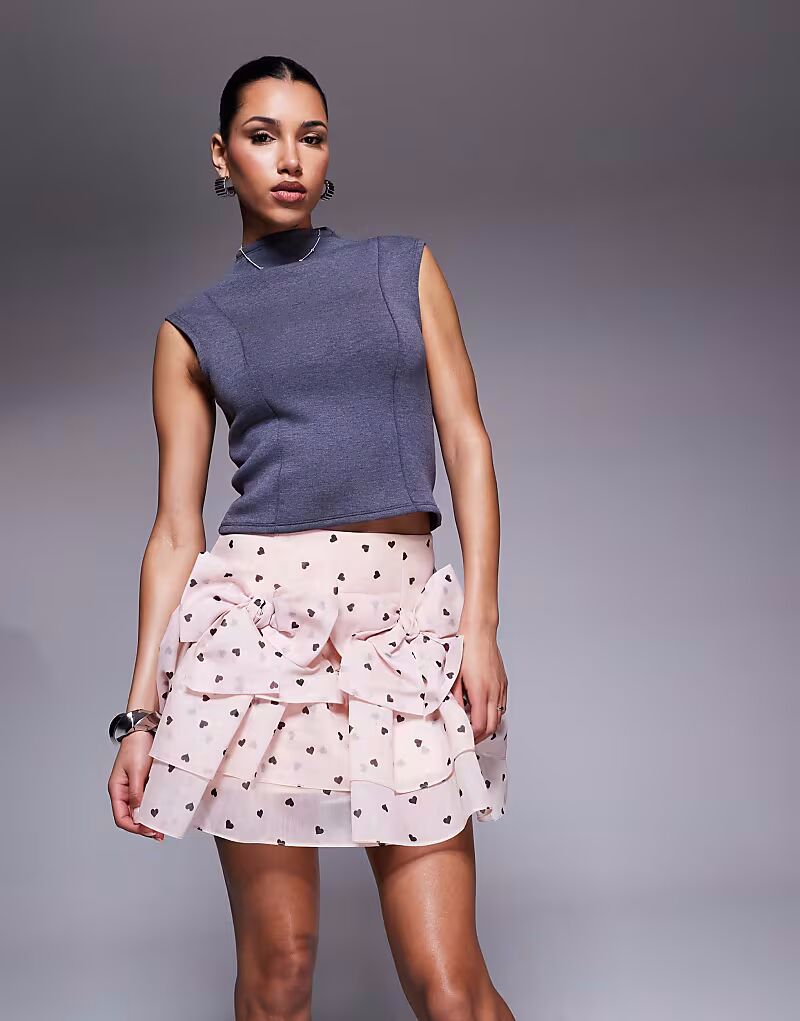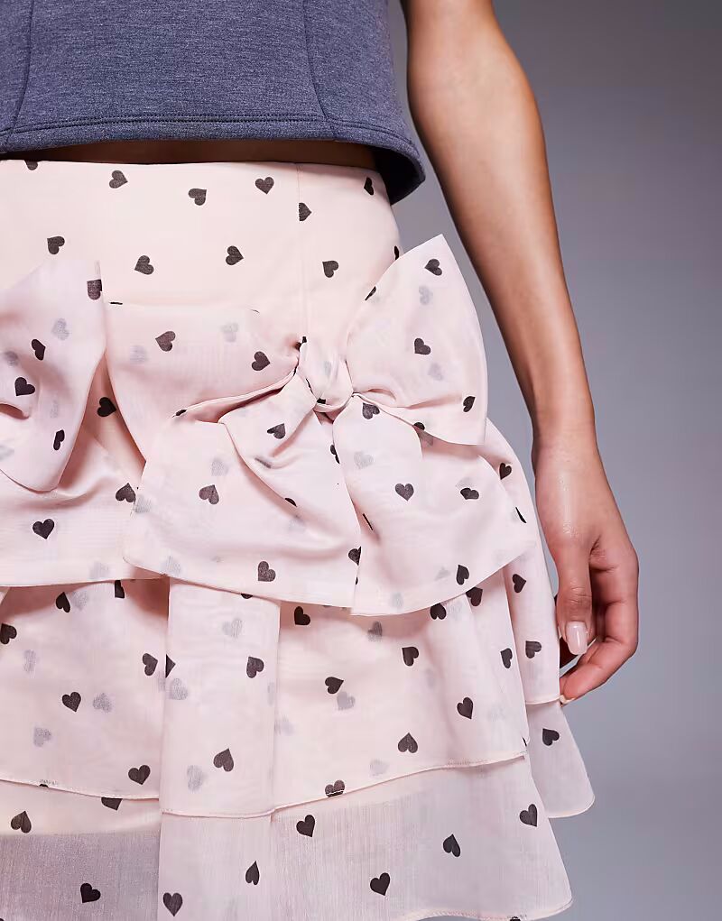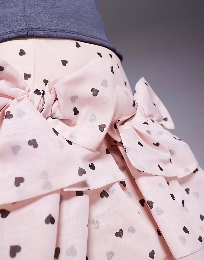 Мини-юбка с бантом спереди и принтом в виде сердца ASOS LUXE розового цвета