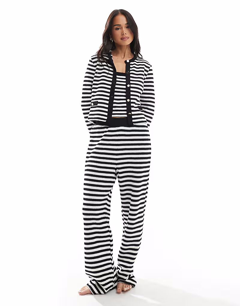 Вязаный кардиган в полоску New Look черного цвета