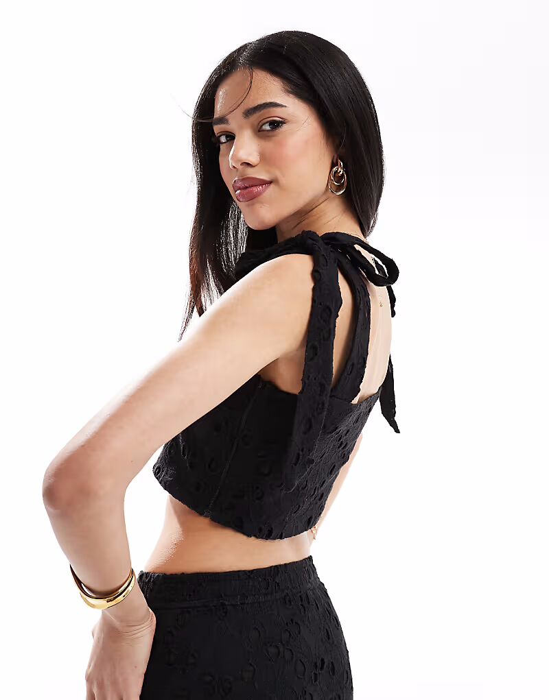 Черный топ South Beach Broderie с завязками на плечах 3 618₽