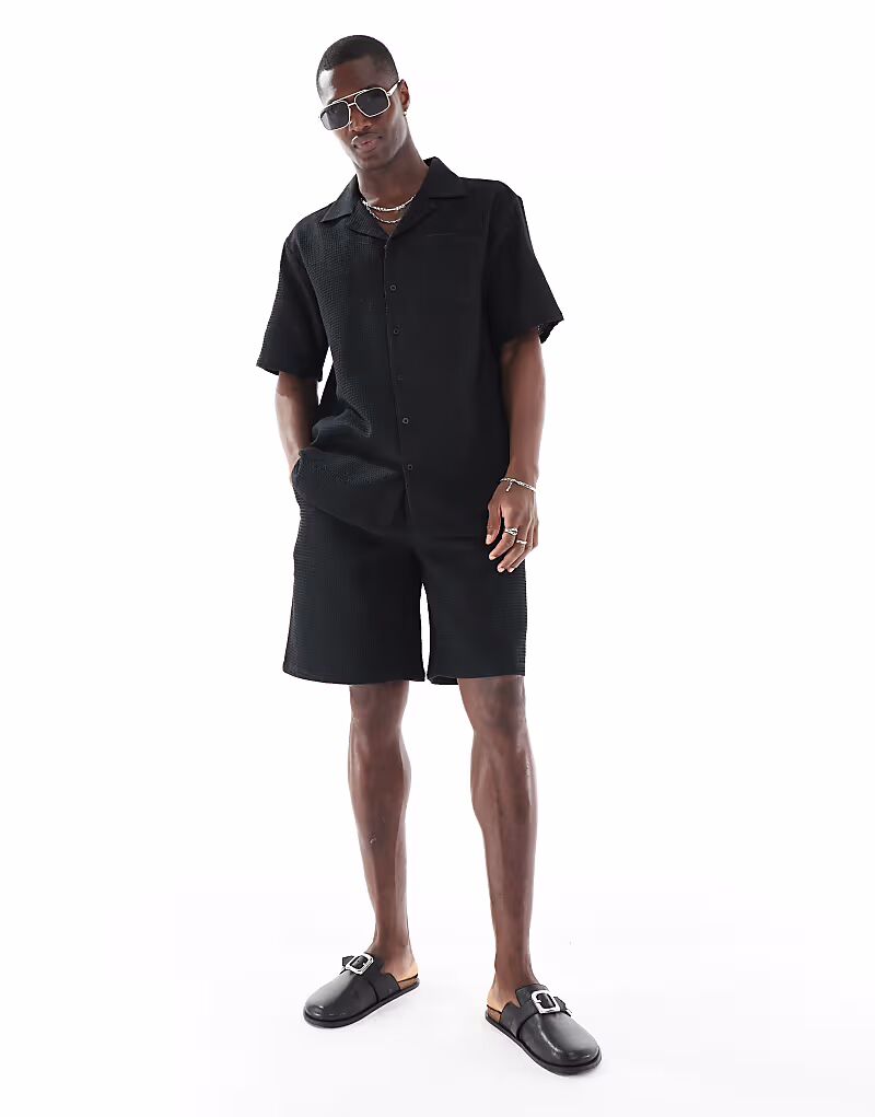 Пляжные шорты Sol Beach вафельного цвета черного цвета