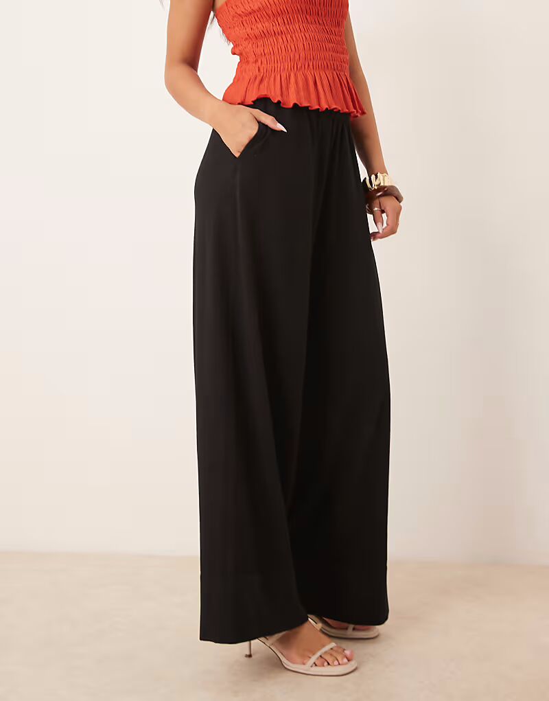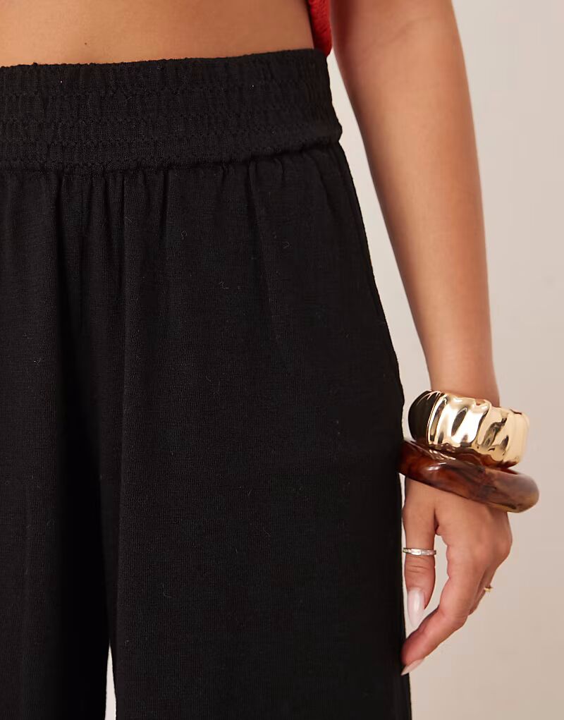 Трикотажные брюки Mango с эластичной талией, черного цвета