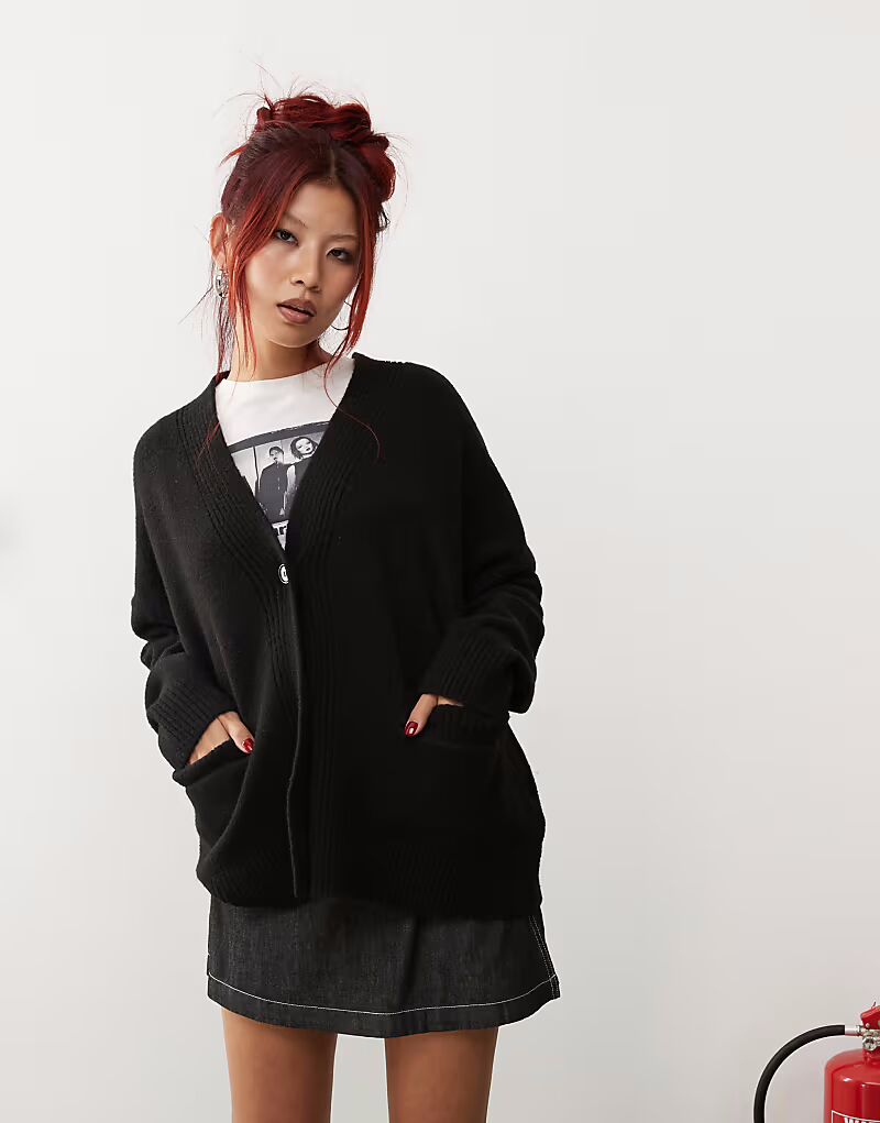 Кардиган Monki свободного кроя с пуговицами спереди, черный