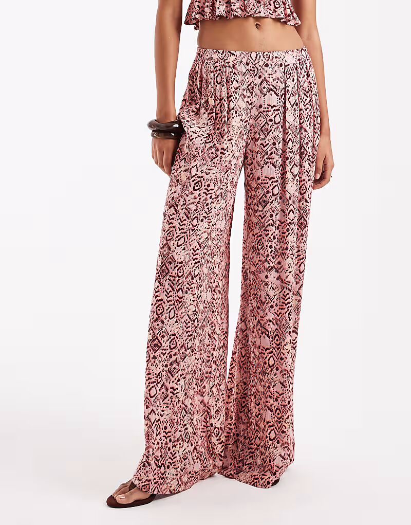 Широкие брюки Stradivarius с розовым узором пейсли