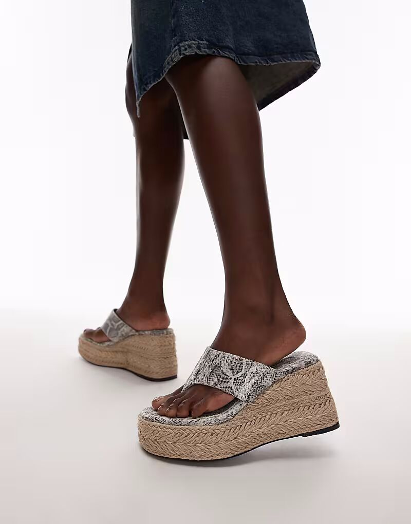 Туфли-стринги Heidi на танкетке Topshop с принтом змеи