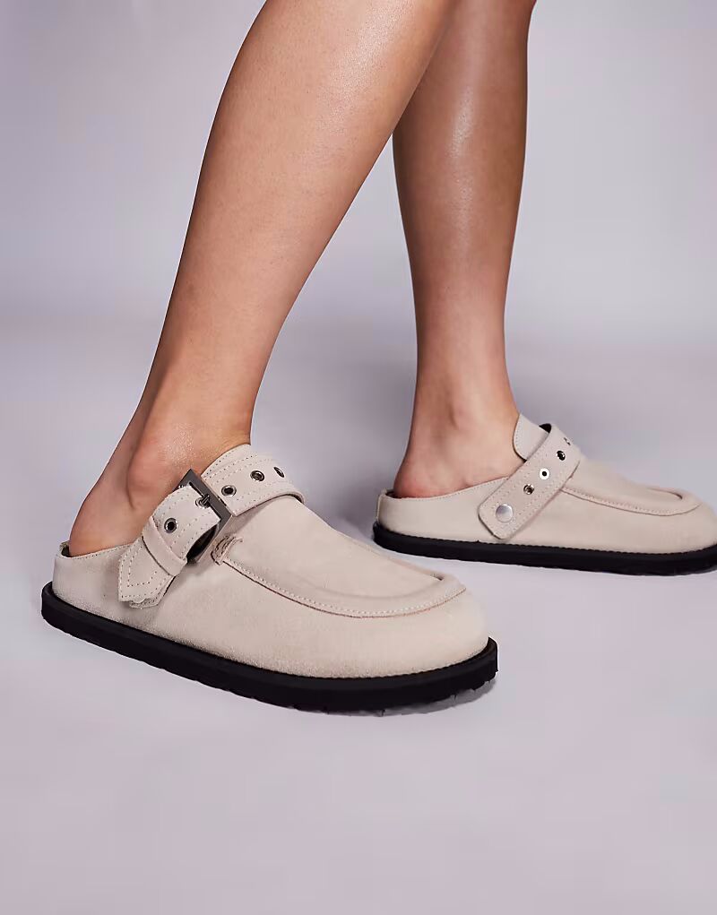 Замшевые сабо Hugo Red с пряжкой цвета камня