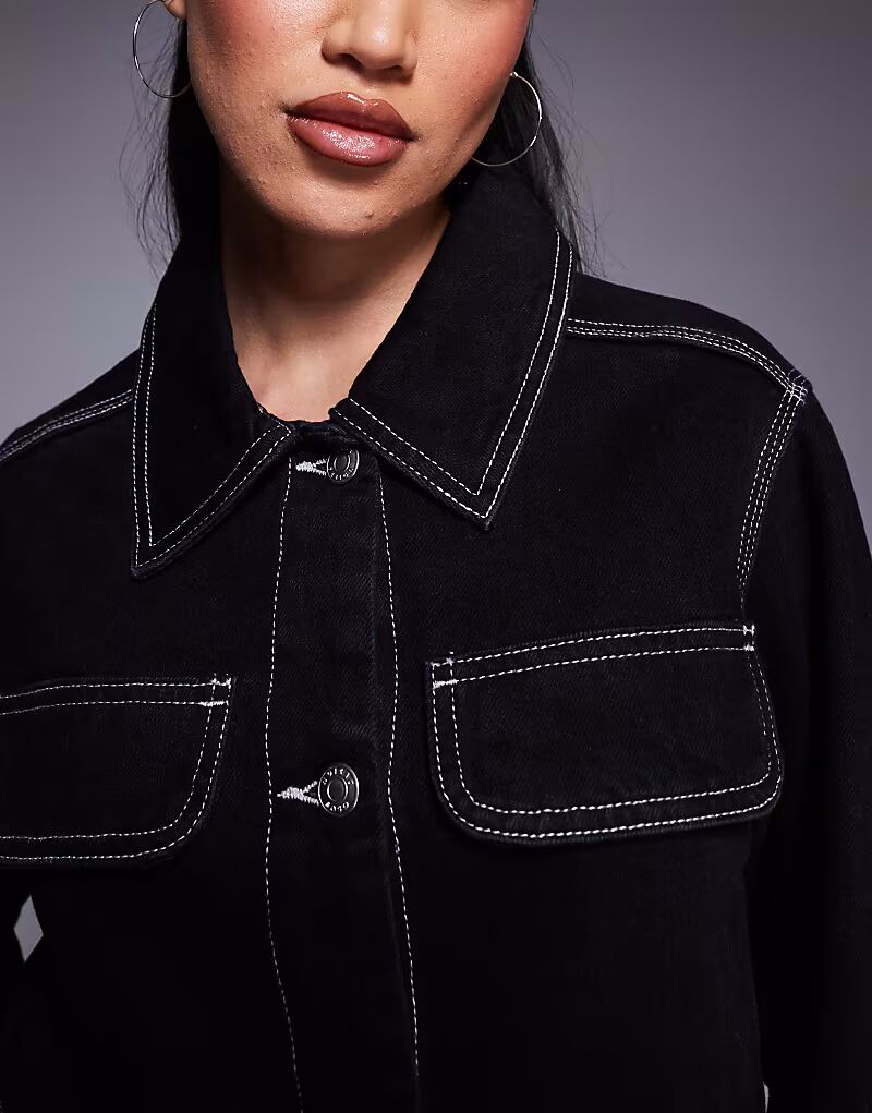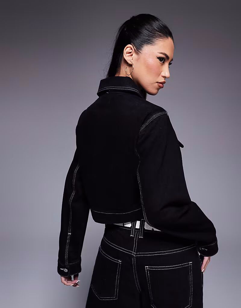 Джинсовая куртка ASOS DESIGN с контрастной строчкой черного цвета