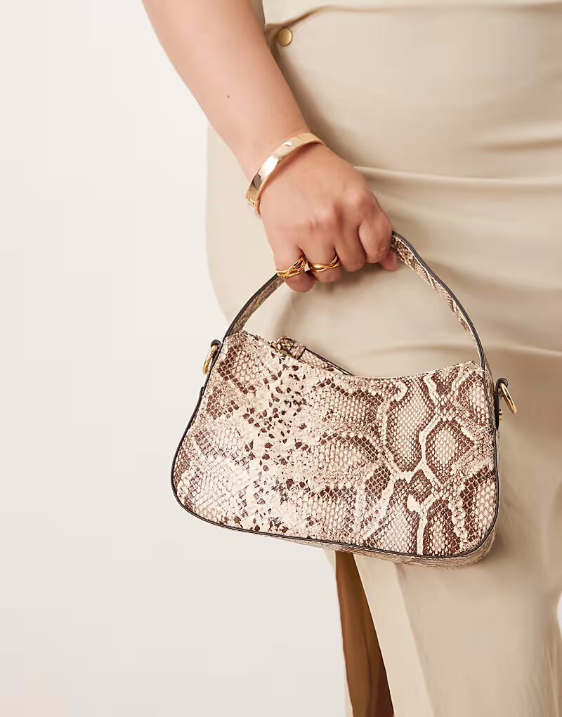 Изогнутая ручная сумка-змея Accessorize бежевого цвета