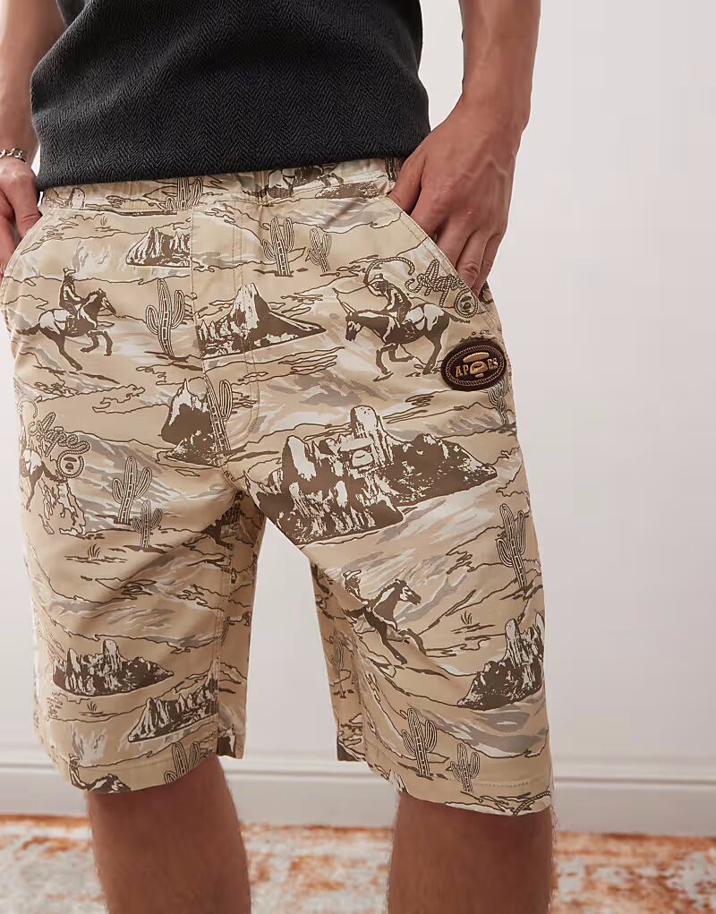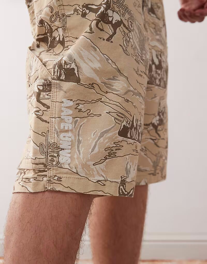 Плотницкие шорты Aape by A Bathing Ape с принтом «родео» по всей поверхности бежевого цвета