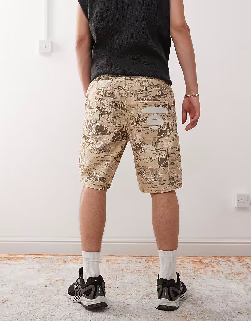 Плотницкие шорты Aape by A Bathing Ape с принтом «родео» по всей поверхности бежевого цвета 27 587₽