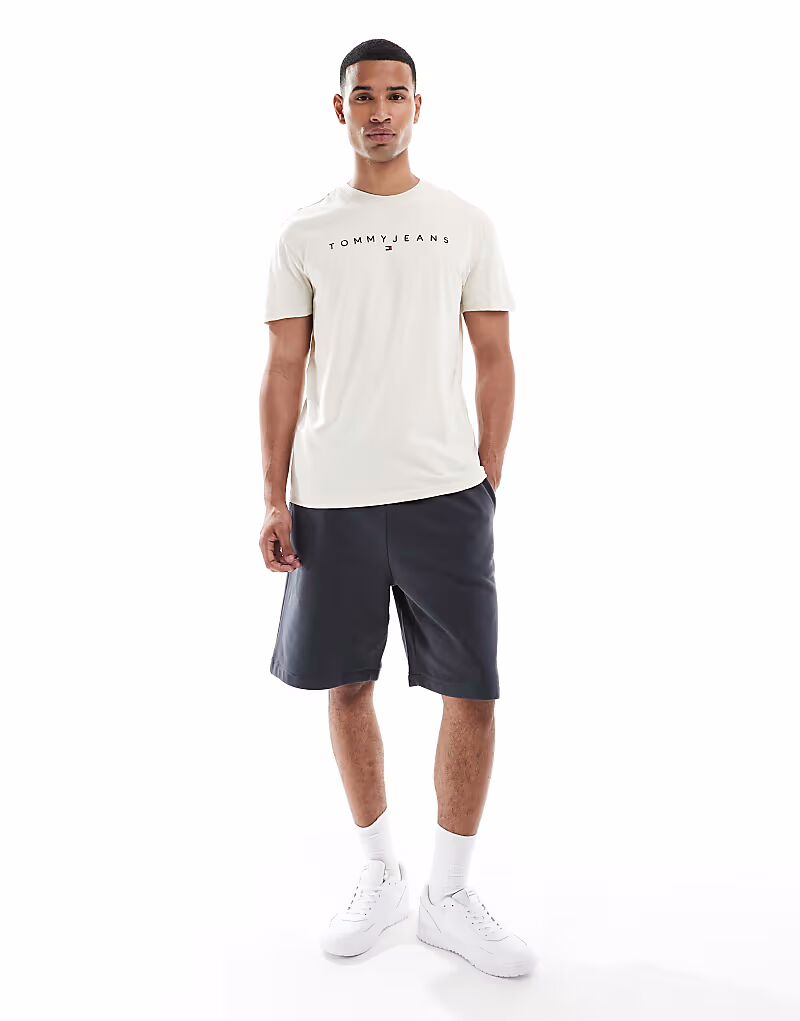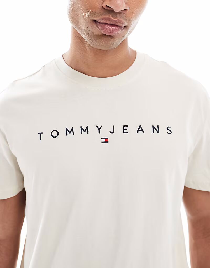 Футболка Tommy Jeans с линейным логотипом бежевого цвета