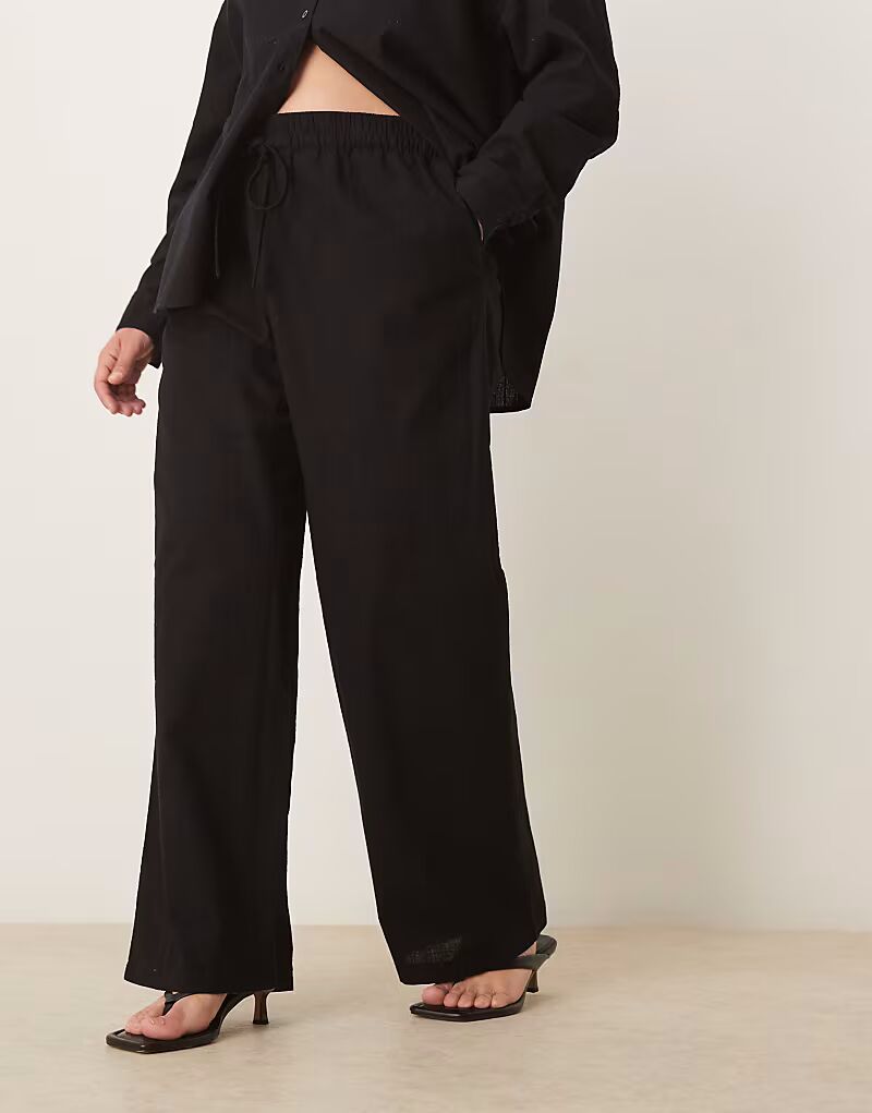 Льняные брюки-клеш ASOS DESIGN Curve черного цвета